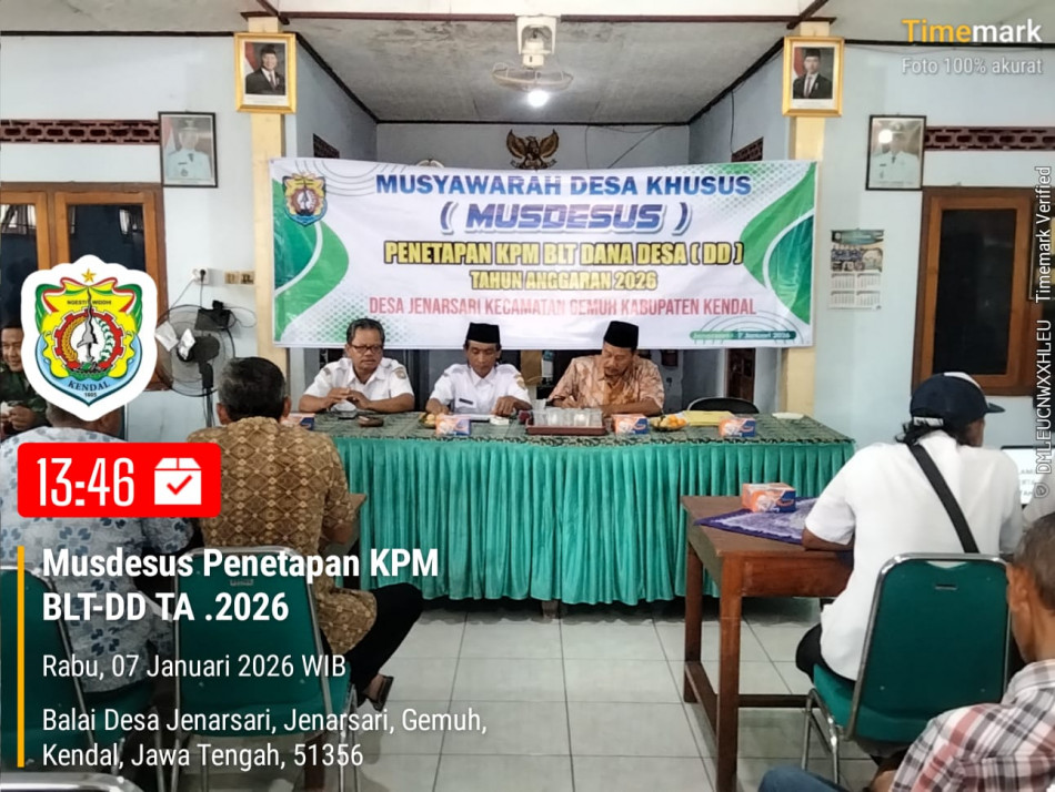 Jenarsari, Rabu 7 Januari 2026 Musyawarah Desa Khusus (Musdesus) untuk penetapan Keluarga Penerima Manfaat (KPM) Bantuan Langsung Tunai Dana Desa (BLT DD) tahun anggaran 2026 ,Telah dilaksanakan di Desa Jenarsari yang di hadiri oleh Pihak Kecamatan,Pemdes ,BPD,RT, RW, PKK, Posyandu ,Babinsa, Bhabinkamtibmas,Bidan desa dan tamu undangan yang lainnya. Berdasarkan Permendes PDTT No. 16 Tahun 2025 tentang petunjuk operasional atas fokus penggunaan Dana Desa tahun 2026, untuk fokus pengunaan Dana Desa diutamakan penggunaan untuk mendukung salah satunya yaitu penanganan kemiskinan ekstrem dengan penggunaan Dana Desa untuk Bantuan Langsung Tunai Desa dengan target keluarga penerima manfaat dapat menggunakan data pemerintah sebagai acuan.